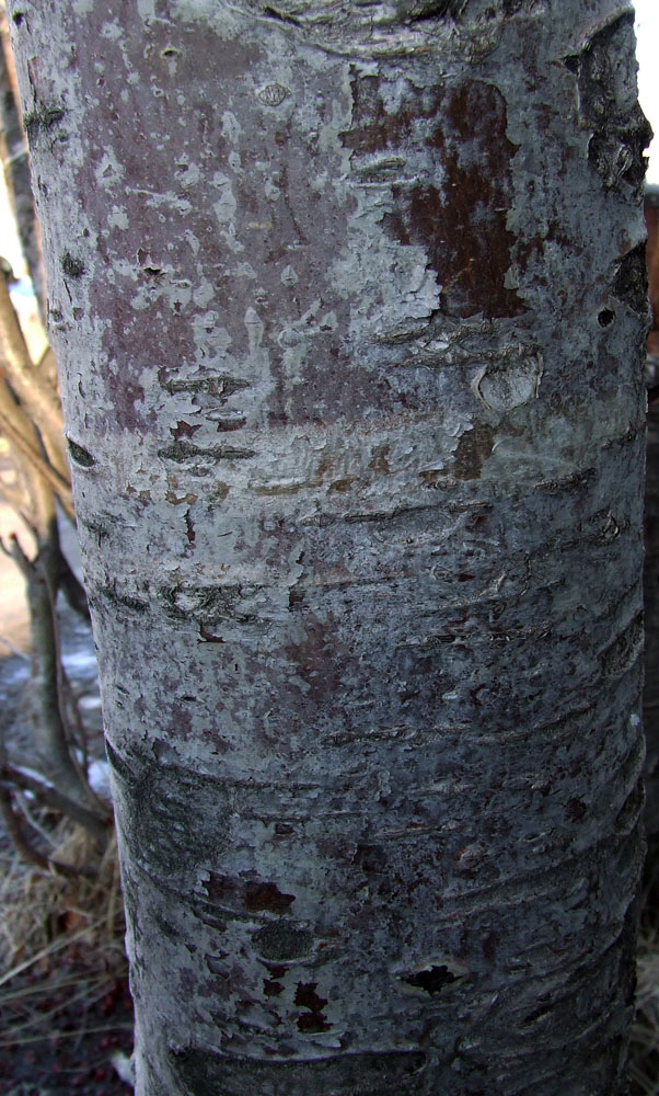 Фрагмент ствола в комлевой части (диаметр около 20 см). Мурманск, р-н Жилстроя, обочина дороги по улице Генералова. 06.04.2012.