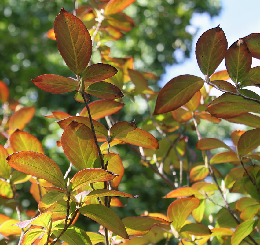 Побеги с листьями, принимающими осеннюю окраску. Германия, г. Krefeld, ботанический сад. 16.09.2012.