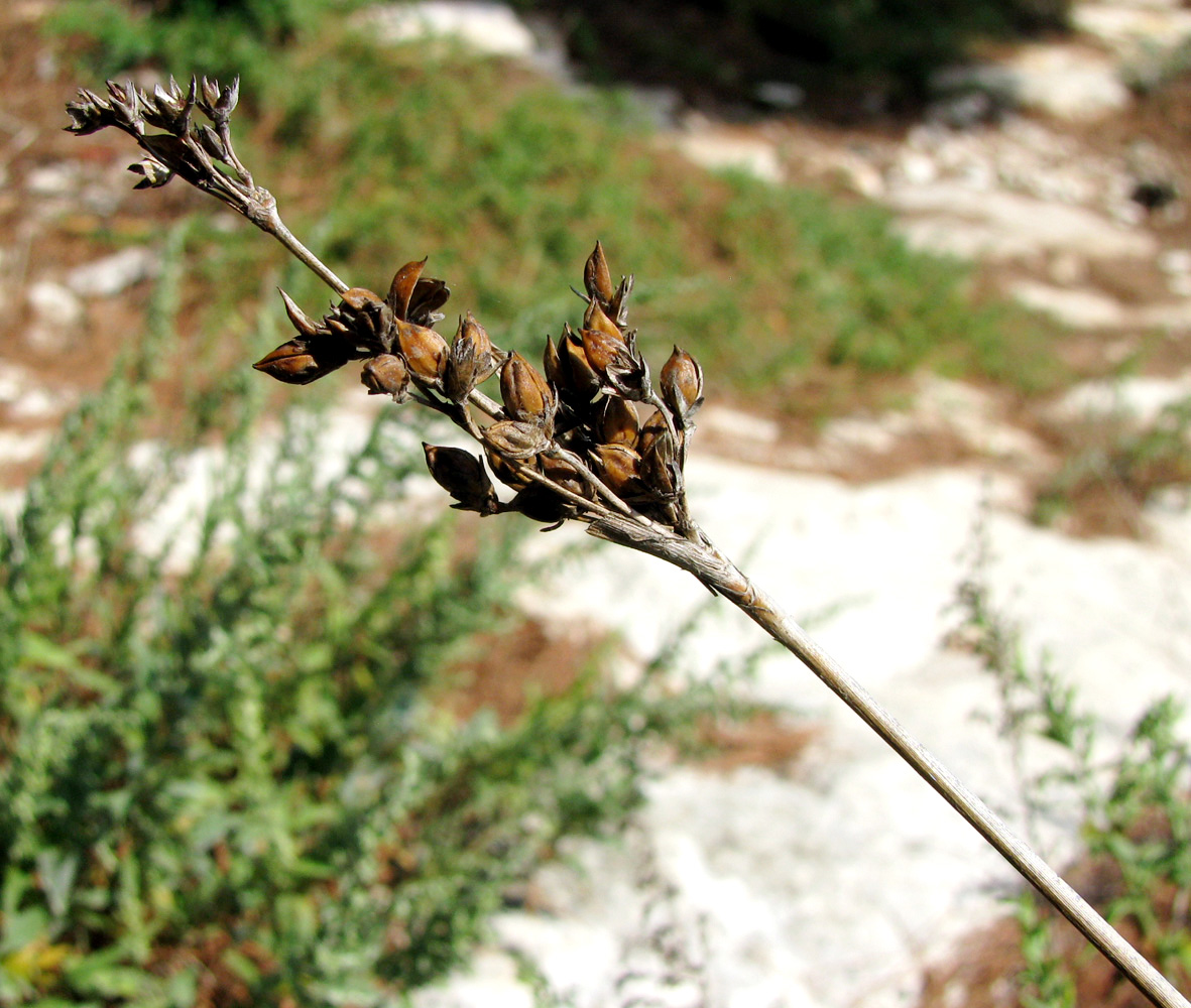 Верхушка побега с соплодиями. Хорватия, Истрия, пос. Баньоле, каменная плита на берегу моря у воды. 04.09.2012.