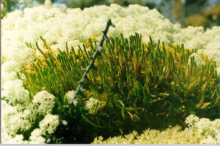 Растение среди лишайников. Республика Саха (Якутия), Олёкминский район, заповедник Олёкминский, р. Олёкма, близ устья р. Тас-Хайко. Июль 1998 г.