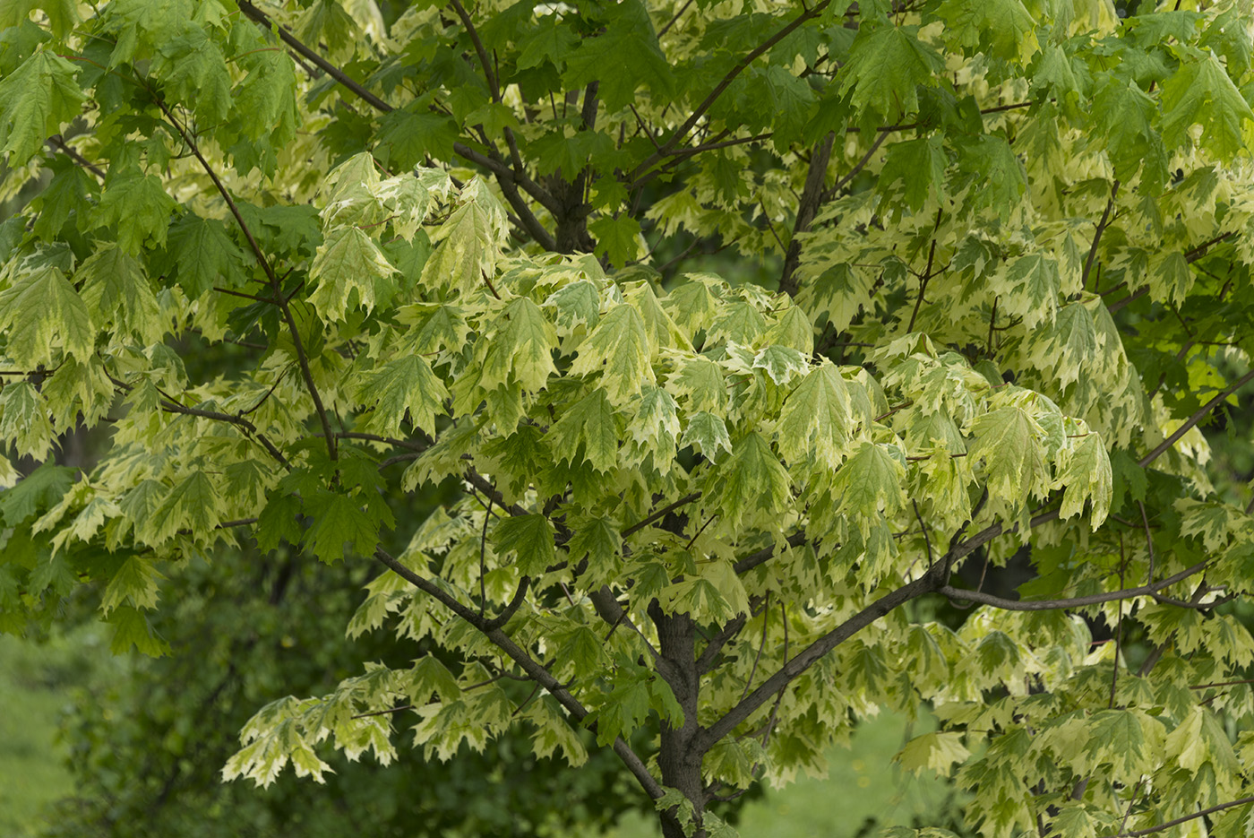 Часть кроны молодого дерева (культивар 'Drummondii'). Нижний Новгород, ул. Заломова, Аллея Дружбы, в культуре. 04.06.2017.