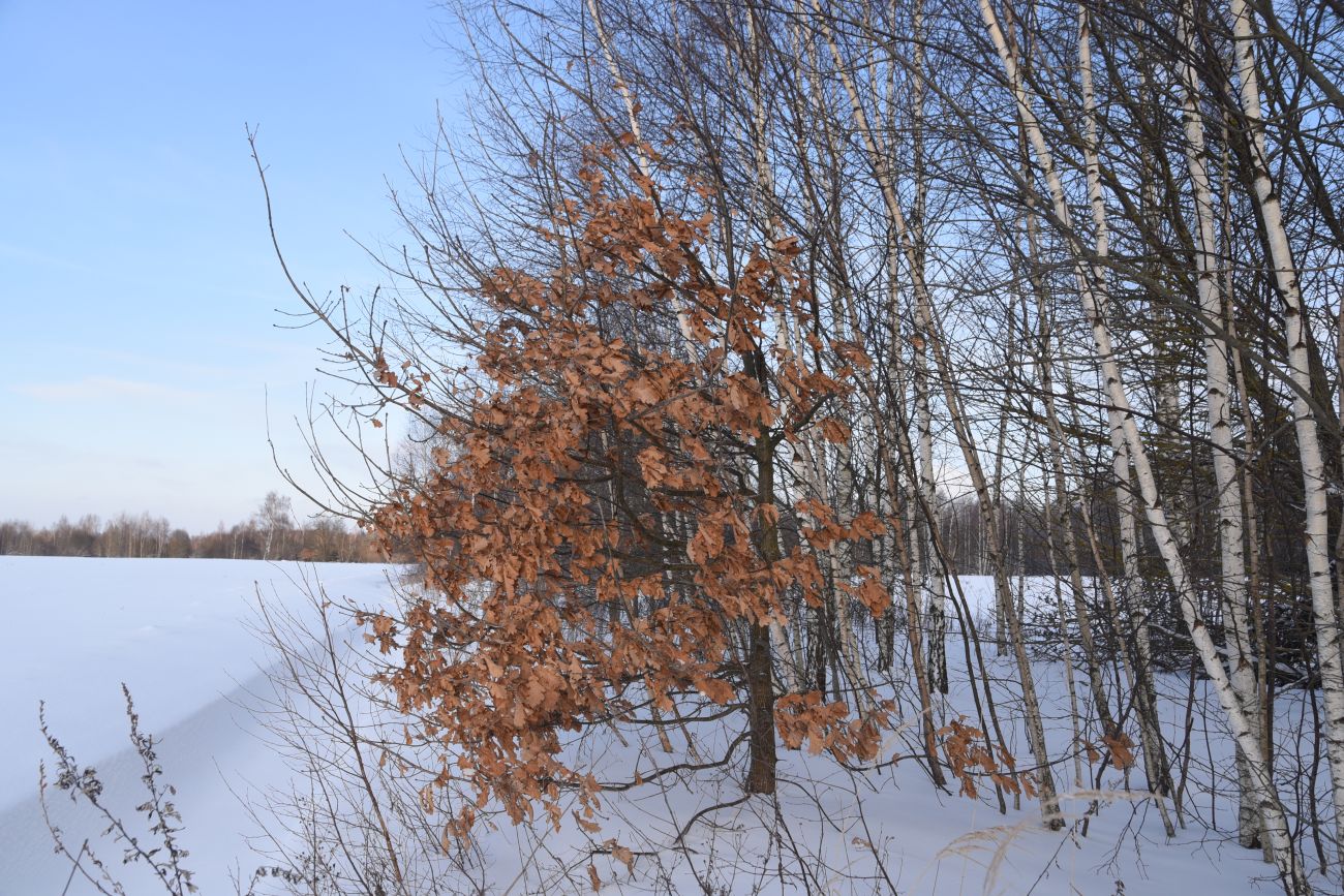 Вегетирующее растение, не сбросившее листву, среди Betula pendula, Betula pubescens. Калужская обл., Боровский р-н, окр. дер. Чёлохово, высота 200 м н.у.м, перелесок между лугом по залежи и полем. 22.12.2021.