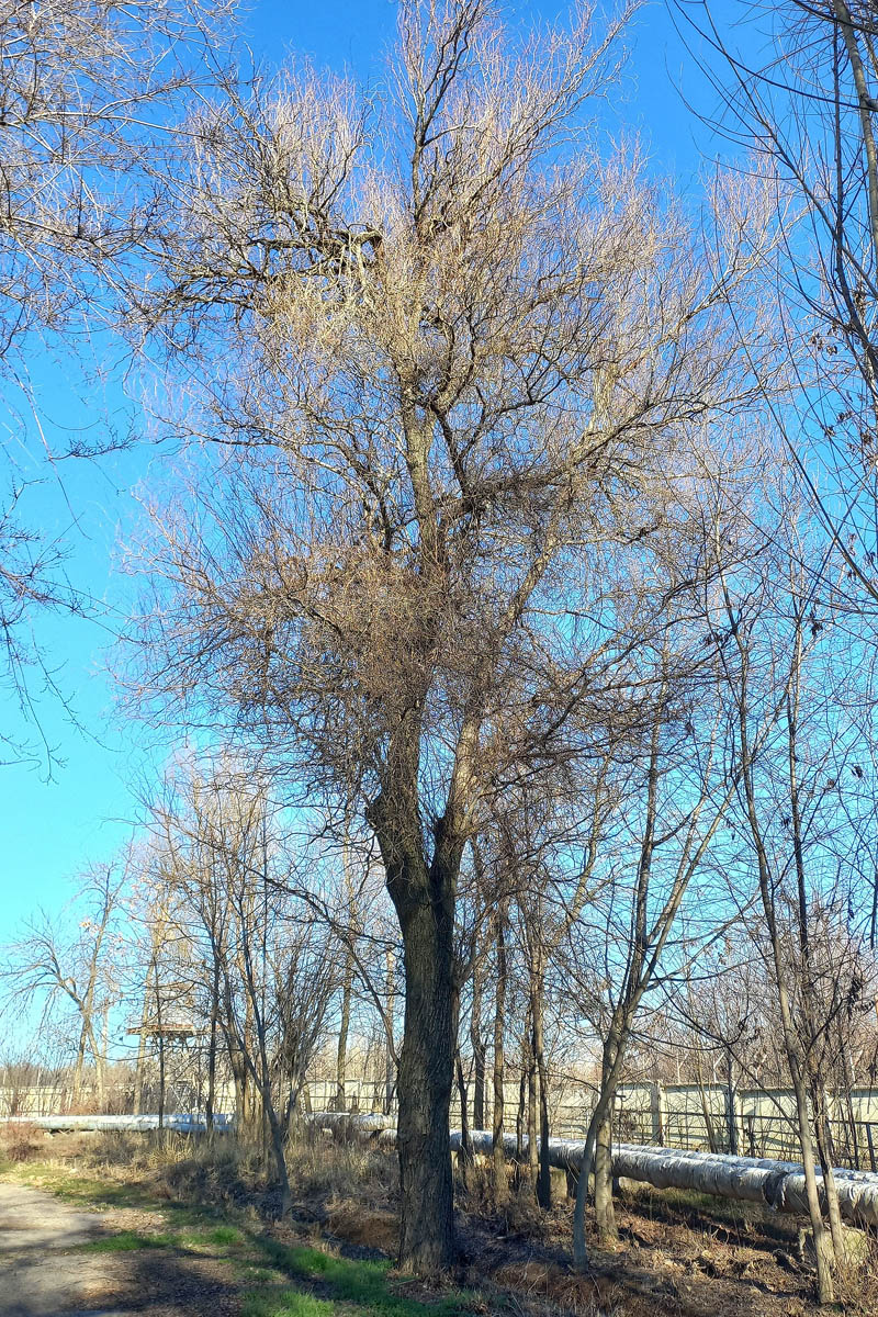 Взрослое дерево. Узбекистан, г. Ташкент, пос. Улугбек, промышленная площадка ядерного центра. 17.02.2022.
