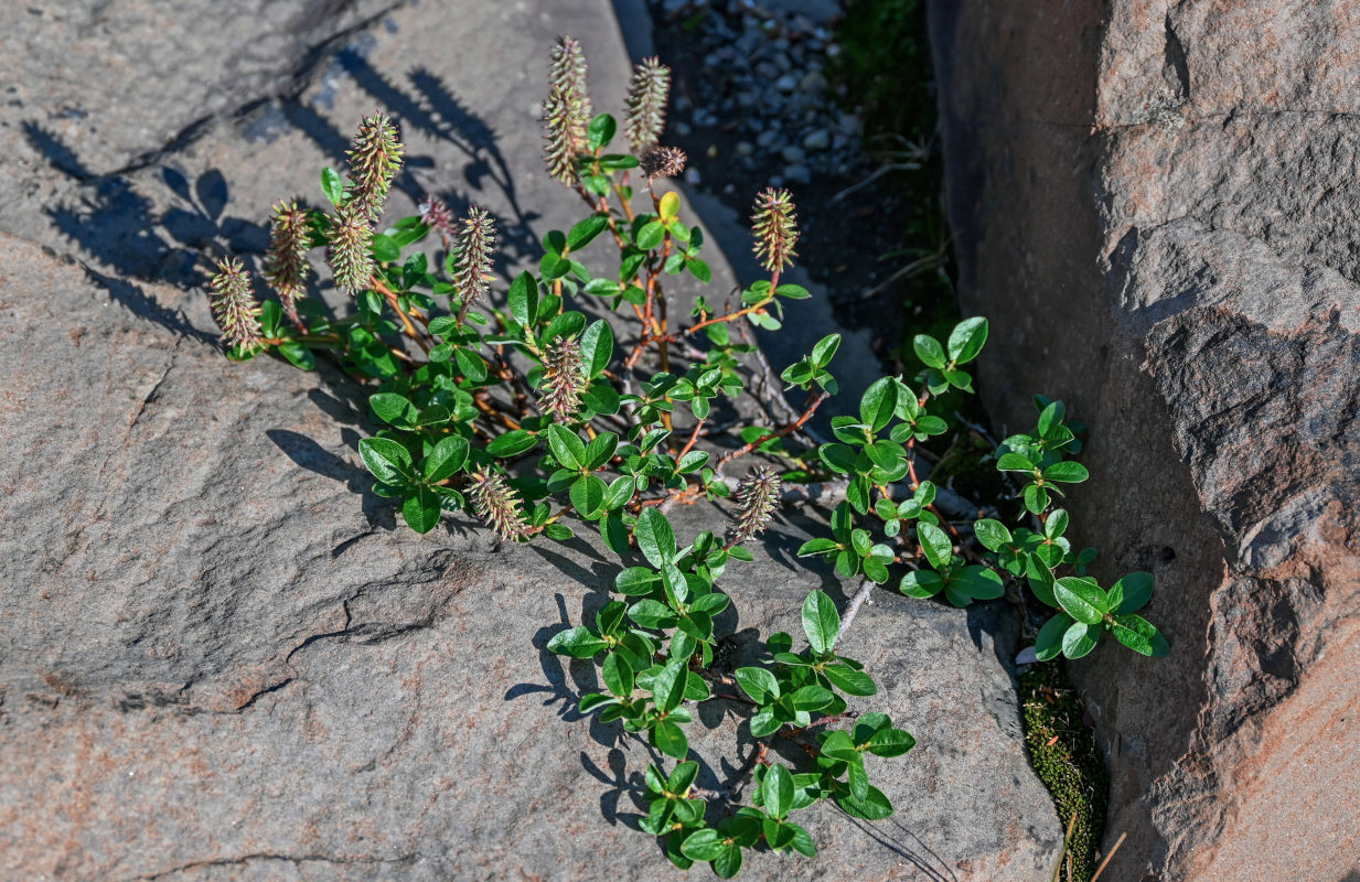 Плодоносящее растение. Красноярский край, Таймырский Долгано-Ненецкий р-н, плато Путорана, водопад Китабо-Орон, каменистый склон. 26.07.2023.
