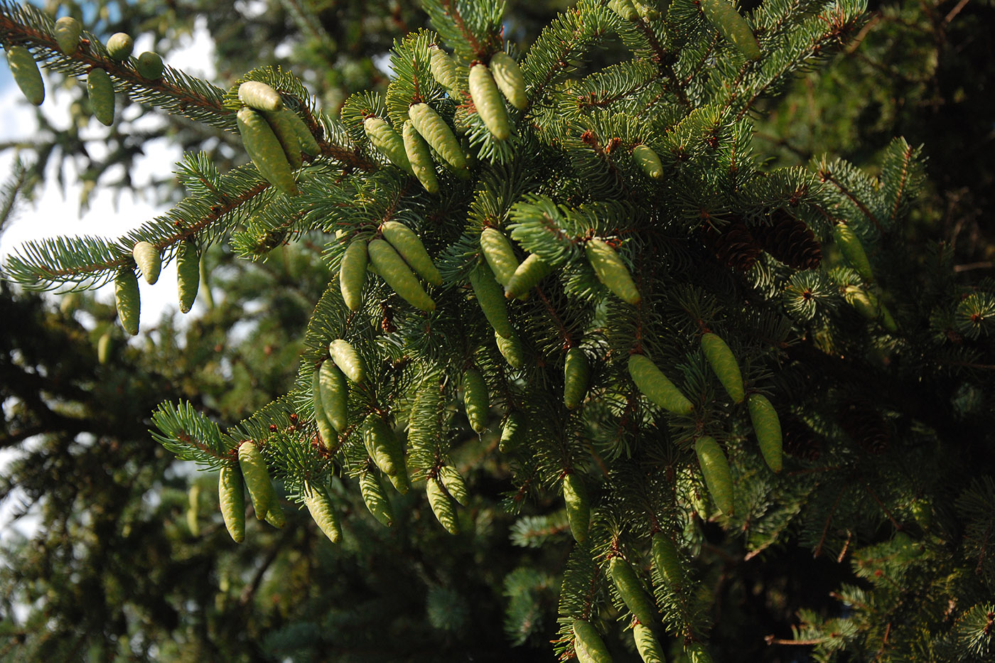 Ветвь с созревающими шишками. Московская обл., г. Серпухов, в культуре. 17.07.2010.