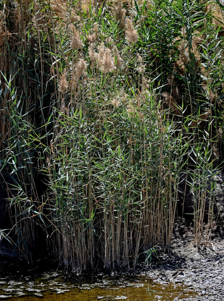 Вегетирующие растения с сухими прошлогодними соплодиями. Египет, мухафаза Асуан, г. Асуан, гранитный карьер, берег ручья. 03.05.2023.