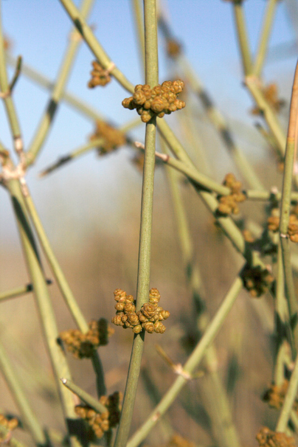 Побеги со стробилами. Узбекистан, Бухарская обл., бугристые пески южнее озера Денгизкуль. 07.04.2011.