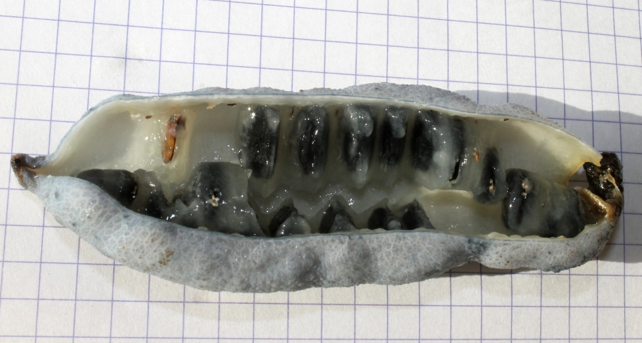 Вскрытый по шву плод. Республика Северная Осетия-Алания, станица Архонская, в культуре. Октябрь 2019 г.