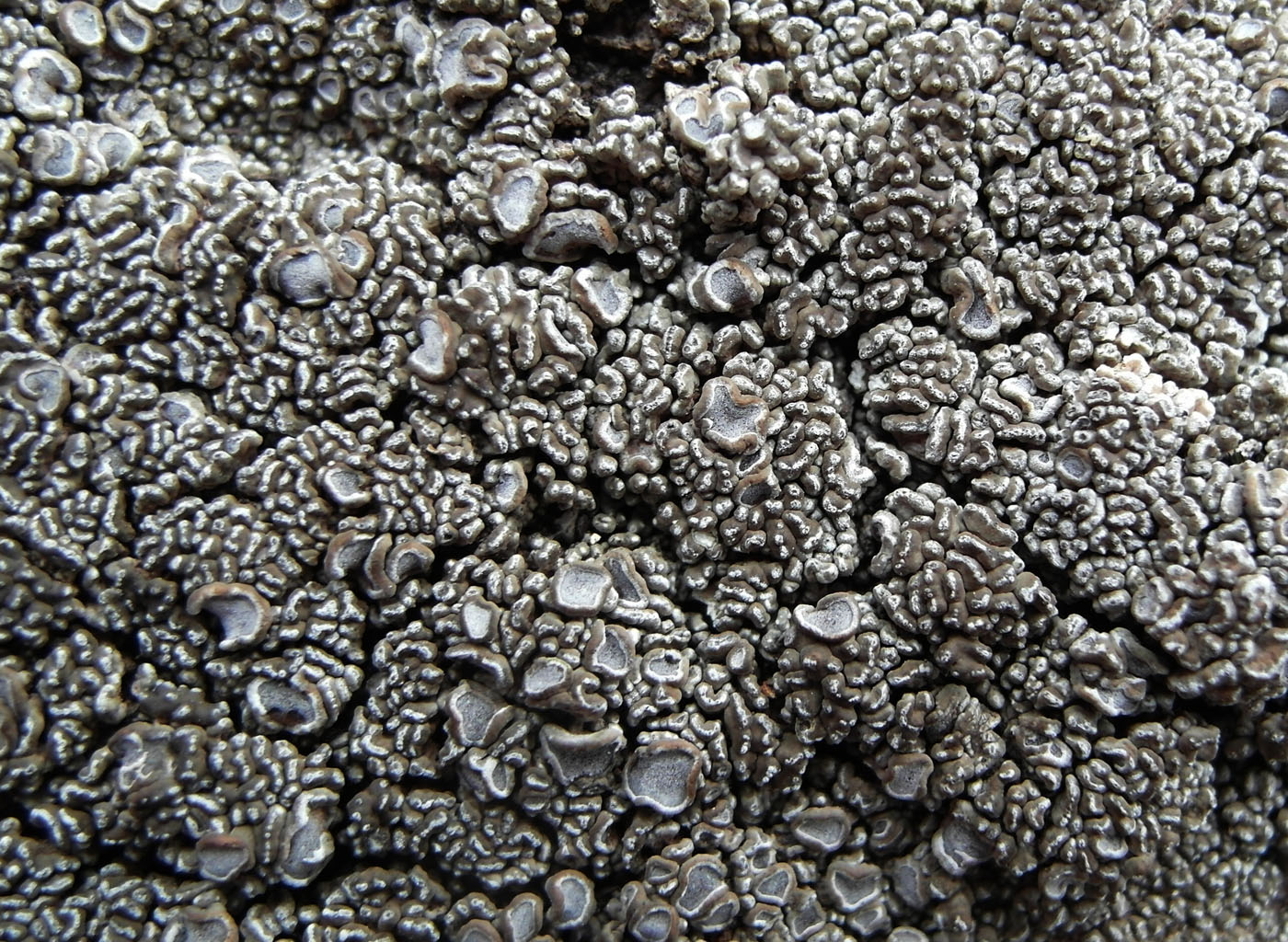 Фрагмент таллома с апотециями и сростками гребневидных ареол в форме розеток. Казахстан, Карагандинская обл., Каркаралинский национальный парк, к северу от оз. Пашино, изрезанное каменистое плато, верхняя часть юго-восточного склона, скальные выходы с редкими соснами. 24.08.2020.