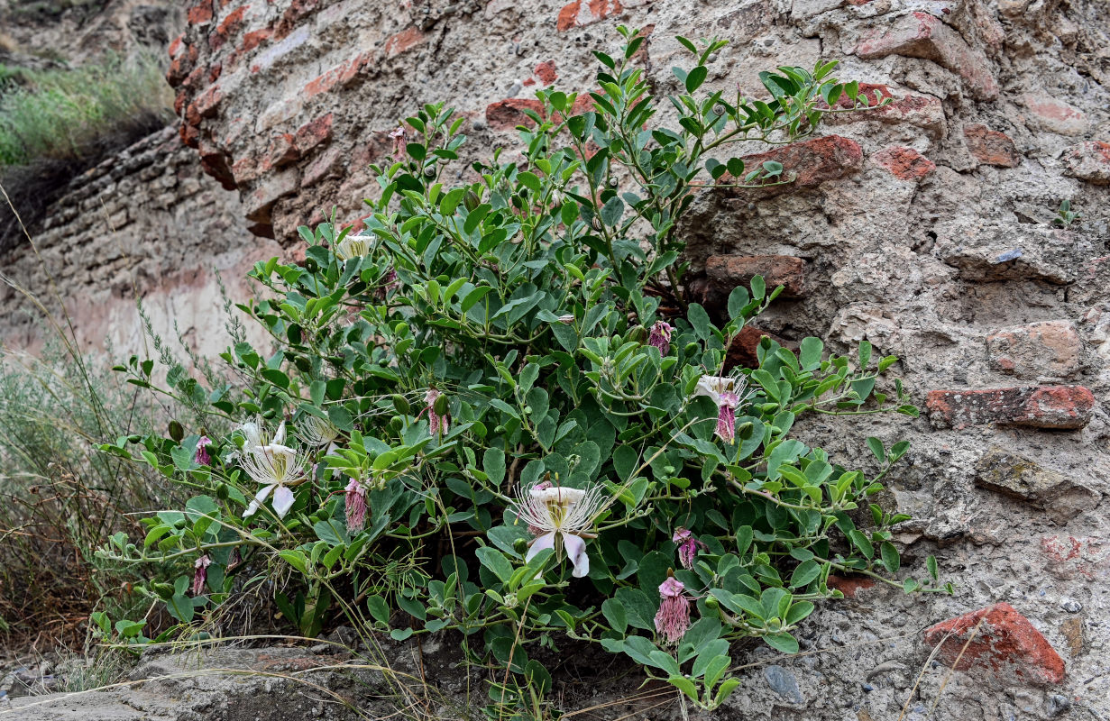 Цветущее растение. Грузия, г. Тбилиси, на каменной стене. 10.06.2023.