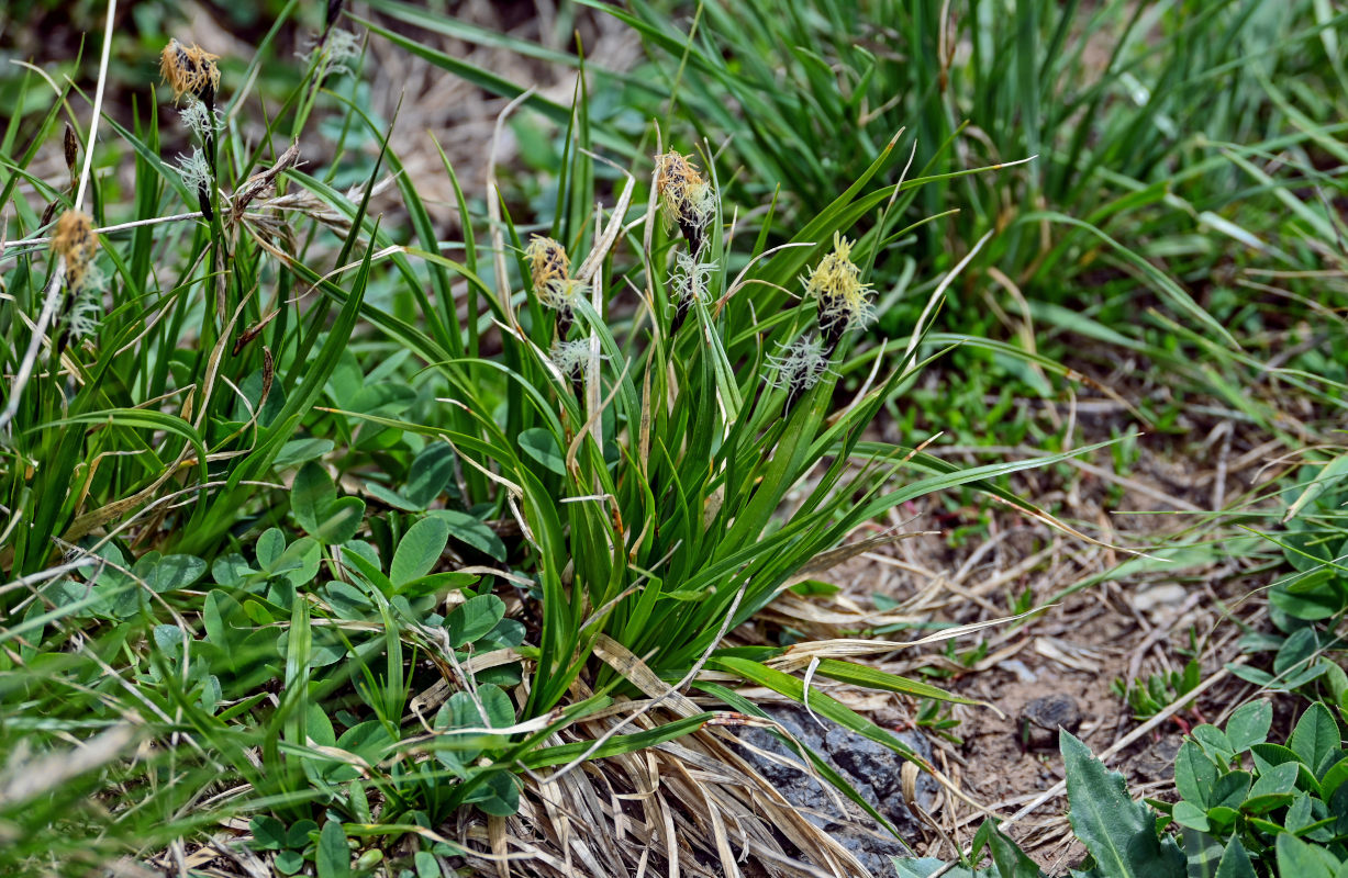 Цветущее растение в сообществе с Trifolium. Армения, обл. Арагацотн, гора Арагац, берег оз. Кари, ≈ 3200 м н.у.м., альпийский луг. 20.06.2022.