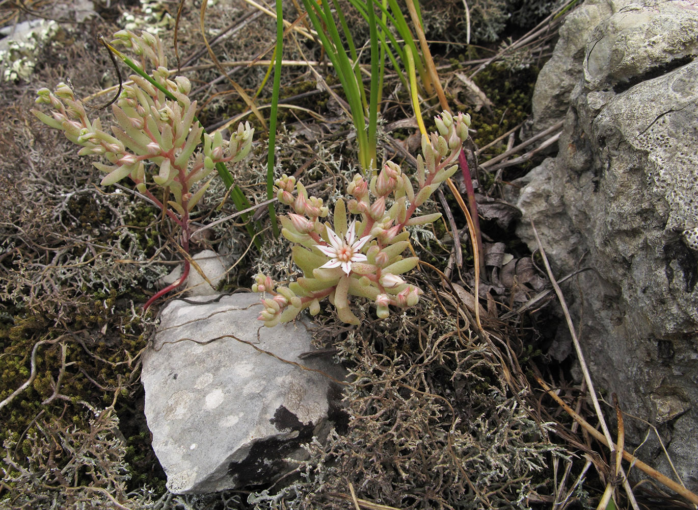 Цветущее растение с аномальным цветком. Краснодарский край, Абинский р-н, окр. станицы Шапсугская, скальное обнажение на склоне к р. Адегой, на моховой подушке. 12.06.2017.