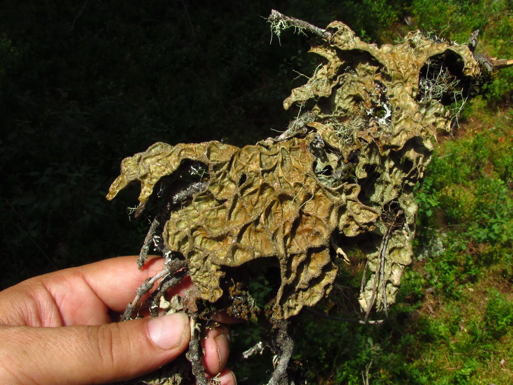 Слоевище на отмерших ветвях пихты сибирской. Красноярский край, Ермаковский р-н, парк "Ергаки", южной склон горы Тушканчик, чернично-зеленомошная тайга. 27.07.2017.