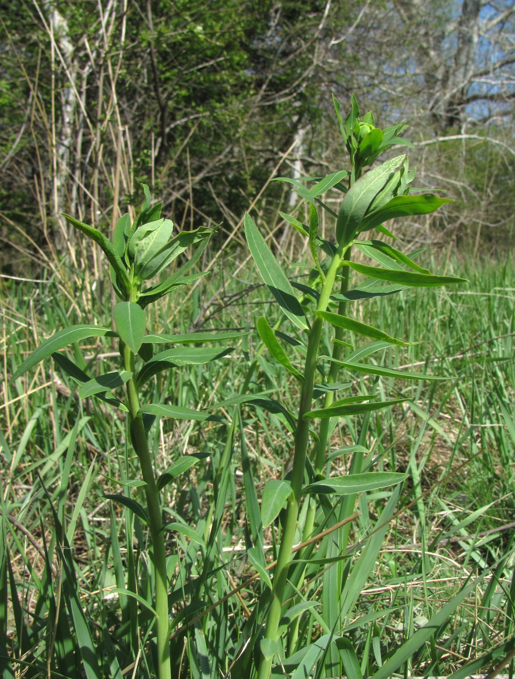 Верхушки побегов; некоторые листья поражены вирусом. Краснодарский край, Абинский р-н, ст-ца Холмская, луг. 09.04.2020.