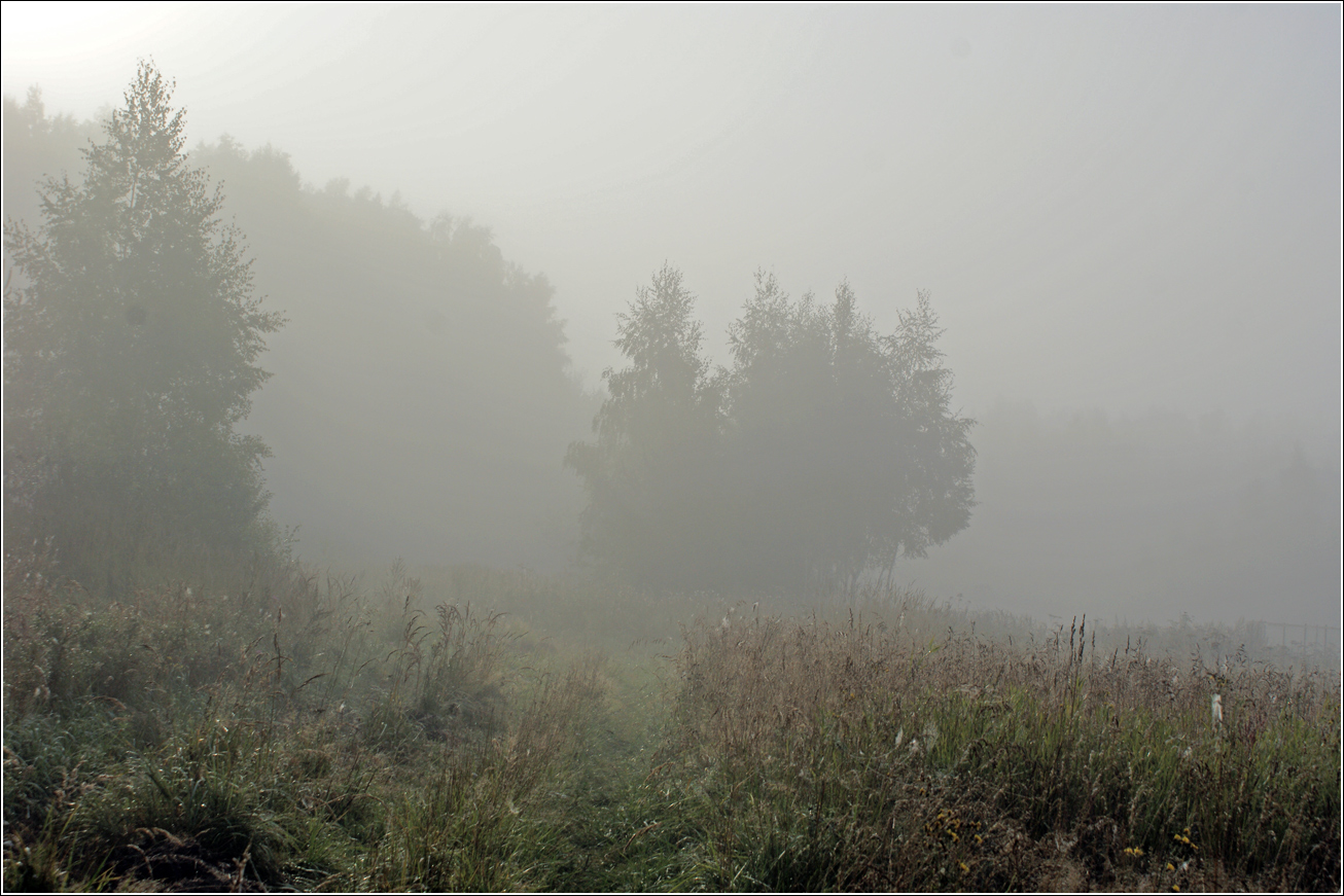 Окраина смешанного леса в утреннем тумане. 30.08.2009. [лето]
