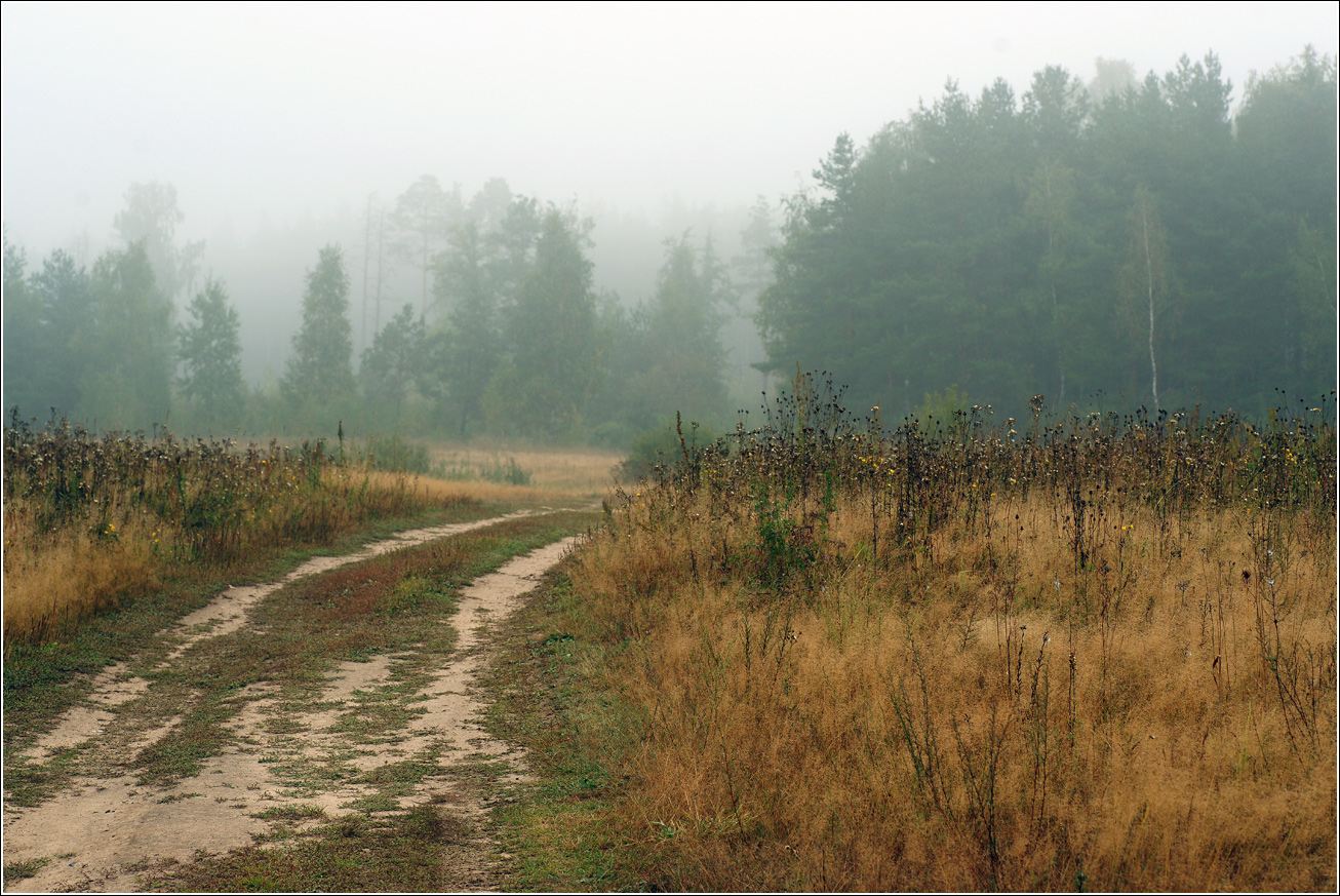 Грунтовая дорога идущая через залежь. Справа и слева плодоносящий василёк Centaurea phrygia. 31.08.2014. [конец лета — начало осени]