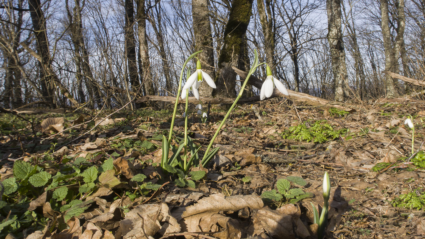 Цветущие и начинающие зацветать растения. Краснодарский край, м/о г. Новороссийск, окр. пос. Глебовка, вершина горы Глебовка, грабово-дубовый лес с примесью Juniperus deltoides. 04.02.2019.