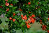 Punica granatum. Ветви цветущего растения. Грузия, Имеретия, окр. монастыря Моцамета, в культуре. 14.06.2023.