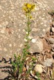 Biscutella laevigata. Цветущее и плодоносящее растение. Испания, Каталония, Барселона, монастырь Монтсеррат, у тропы по уступу горного склона. 25.06.2012.