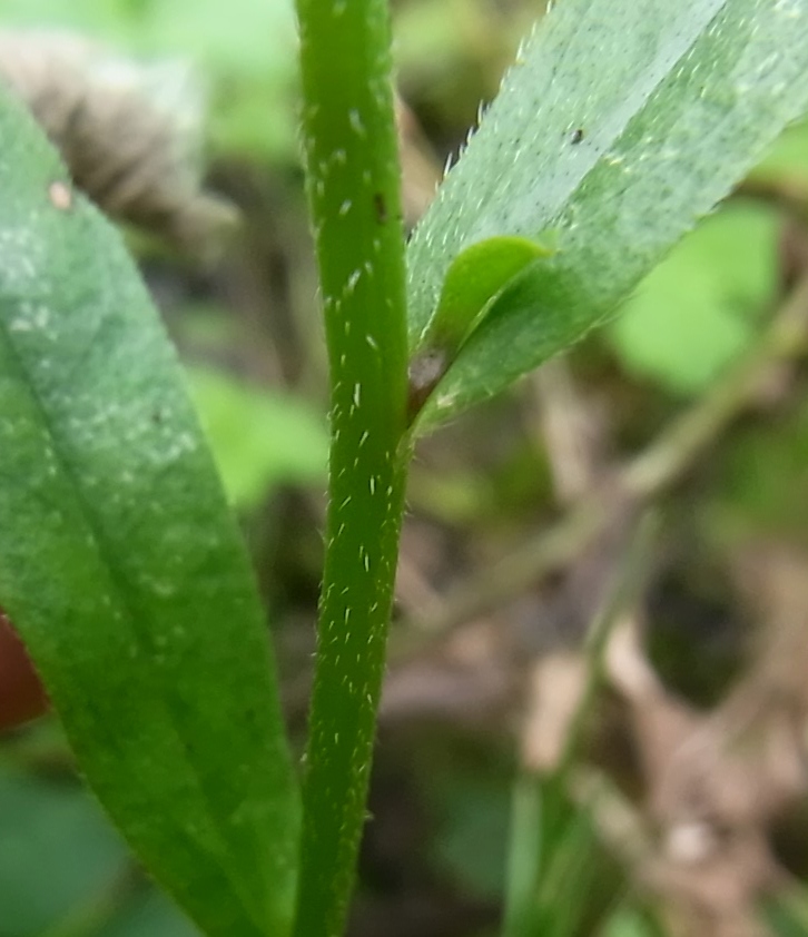 Верхняя часть листовой пластинки опушена по нисходящей к кончику листа, нижняя - вертикально отстоящими волосками, стебель опушён по все длине побега. |