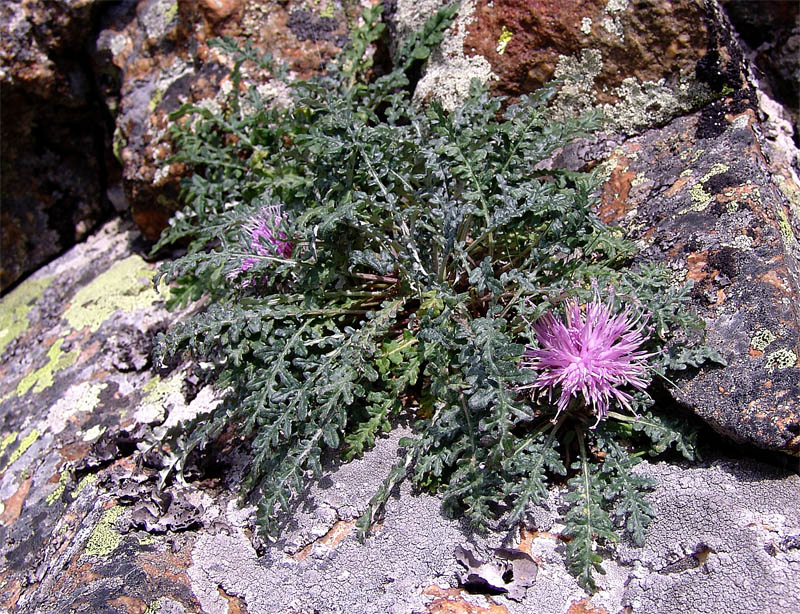 Цветущее растение на скале. Северный Кавказ, Республика Северная Осетия-Алания, бассейн реки Ардон, хребет Чехациртит, 2700 м н. у.м. 13.08.2011.