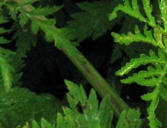 По описанию болиголова всё верно - именно выше черешка - на рахисе - желобок есть. На черешочках - есть. Черешок и черешочки - НЕ ОДНО и ТО ЖЕ Продолговатые области охватывают небольшие выемки на листьях. Выемки абсолютно одинаковы. Если это не желобочки, то так выглядят ребра, что не мешает им быть одинаковыми.