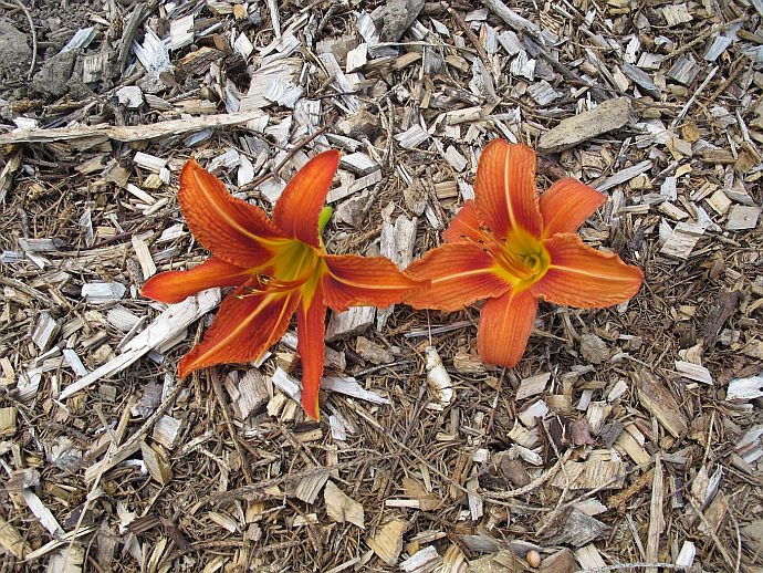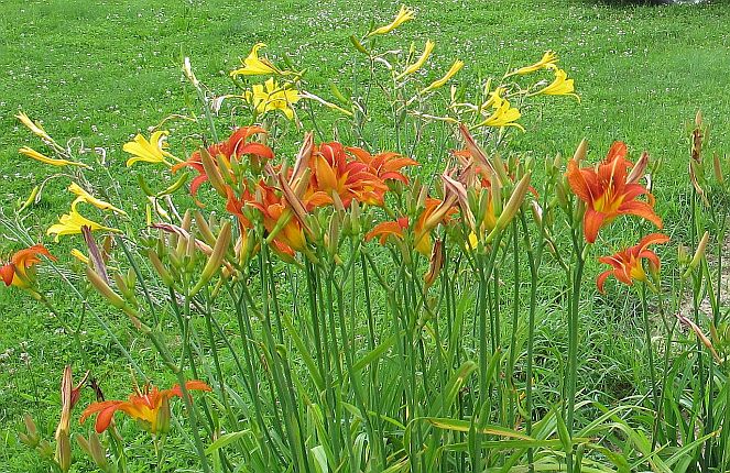 Прилагаю снимки двух старинных клонов Hemerocallis fulva, и один с первыми гибридами, окраска которых существует только благодаря включении генов Hemerocallis fulva в программу гибридизации.