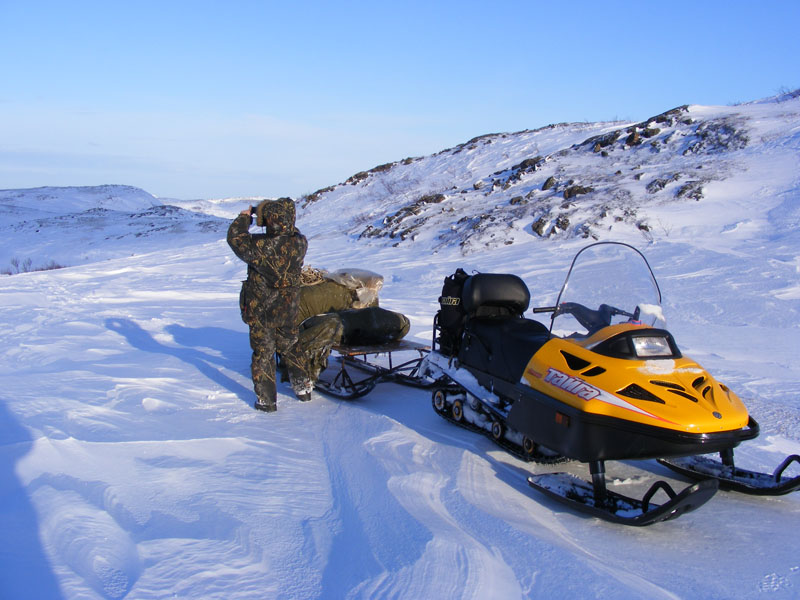 Низкие кусты со срезанными верхушками на горном склоне. Мурманская обл., Кандалакшский р-н, окр. пос. Лувеньга, южный склон гор Лувеньгские Тундры, тундровый пояс, 350 м н.у.м. 01.07.2010.