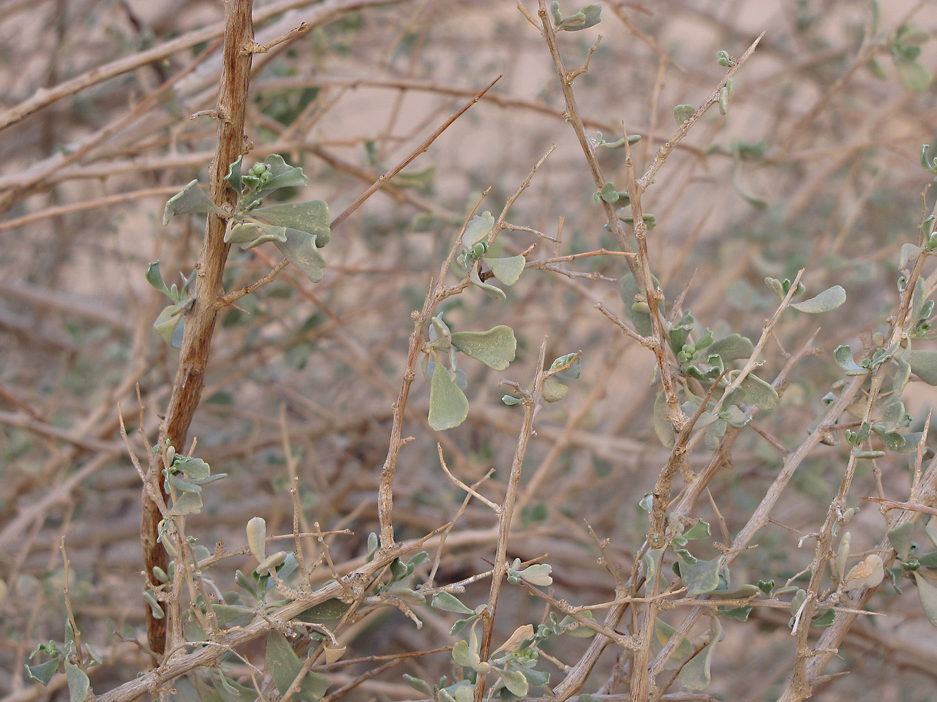Ветви с листьями и бутонами. Израиль, долина Арава, солончак Эйн-Эврона.