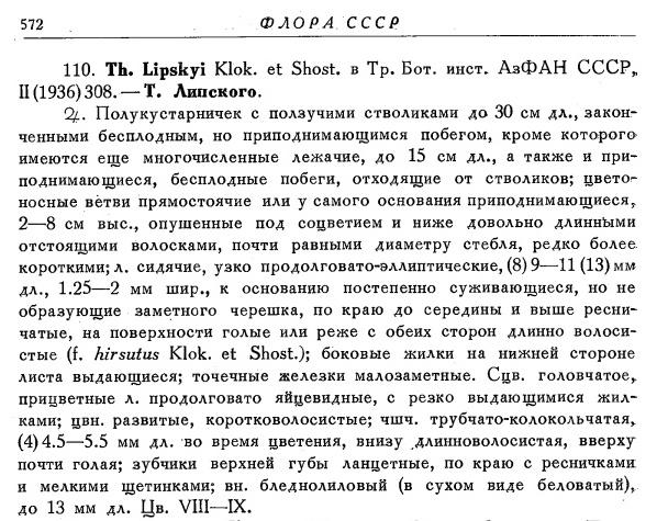 Объединение Th. lipskyi Klok. et Shost. с Th. dagestanicus Klok, et Shost. не обосновано. |