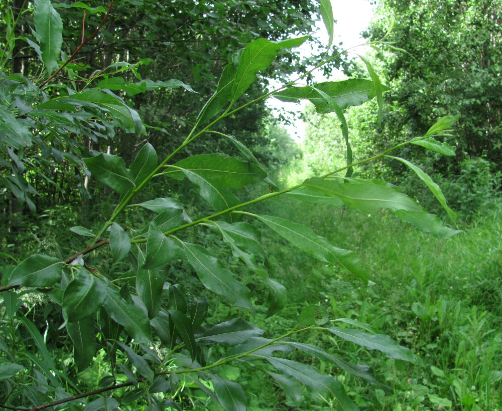 Верхушка побега (гибрид S. dasyclados x S. phylicifolia). Окр. Архангельска, у небольшой дороги в мелколиственном лесу. 15.07.2012.