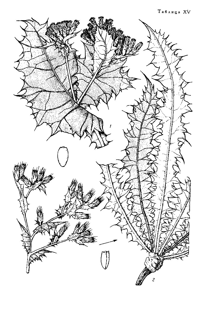 | Andriy Kovalchuk | Пролистал всё, что нашлось по кузиниям в библиотеке Шипунова - к сожалению, все имеющиеся в отечественной литературе ключи, по сути, повторяют ключ из Флоры СССР, а потому не совсем понятно, как различать C. polycephala и C. resinosa, кроме размеров растения. Примечательно, что рисунок C. polycephala во Флоре Киргизской ССР (внизу, под номером 2) очень схож с рисунком C. resinosa из Флоры СССР (вверху, под номером 2).