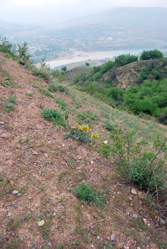 Цветущее растение на горном склоне. Узбекистан, Ташкентская обл., зап. отр. Чаткальского хр., склон недалеко от наскальных изображений Ходжикента. 26.04.2012.