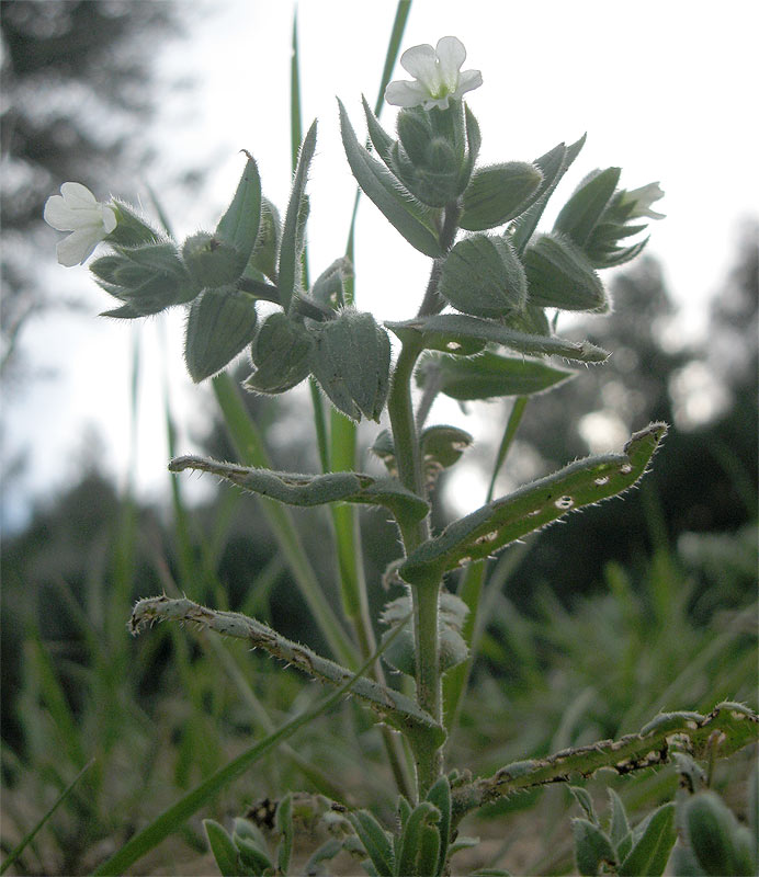 Цветущее и плодоносящее растение с повреждёнными листьями. Израиль, Северный Негев, лес Лаав. 25.02.2013.