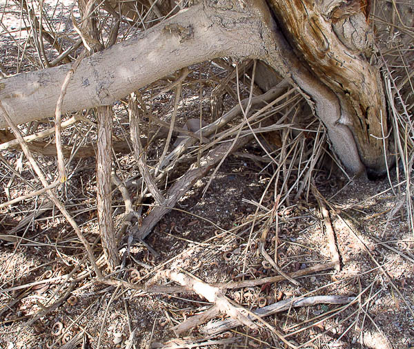 | Tatiana Malchinski | Возможно, какие-то ветви опираются, они не могут не соприкасаться. Но в общем и целом это выглядит так, как будто Ochradenus пробивается через ветви Acacia, ищет просветы между ветвями дерева и растёт вверх. Внизу это выглядит так
