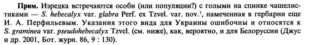 | Lena Glazunova | Очень хочется на цветок вблизи посмотреть. Я, конечно, находила звездчатку, которая вроде как определяется как hebecalyx, но я видела и точно такую же, но с лысыми чашелистиками. А ещё тут на сайте были сомнения в правильности этих определений. Читала с пристрастием ФВЕ, обратила внимание на примечания к S. graminea