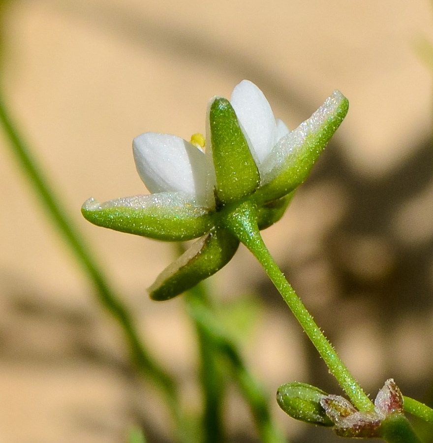Цветок (вид со стороны чашечки). Израиль, нагорье Негев, окр. киббуца Сде Бокер, рудеральное местообитание. 10.03.2013.