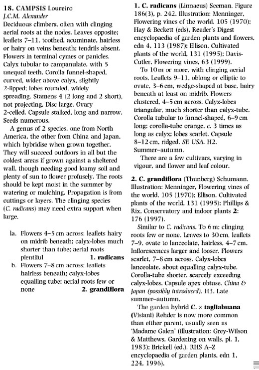 Посмотрите в Сети всю доступную информацию об этих трех таксонах. Спасибо за ключи, по-моему вполне соответствует C. radicans. И фотографии C. radicans (только не из Европы!).Campsis.jpg |
