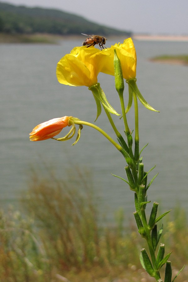 Верхушка соцветия с бутоном, цветками, плодами и мухой Eristalis tenax. Крым, предгорья, Партизанское вдхр., пойма р. Альма. 28 июля 2013 г.