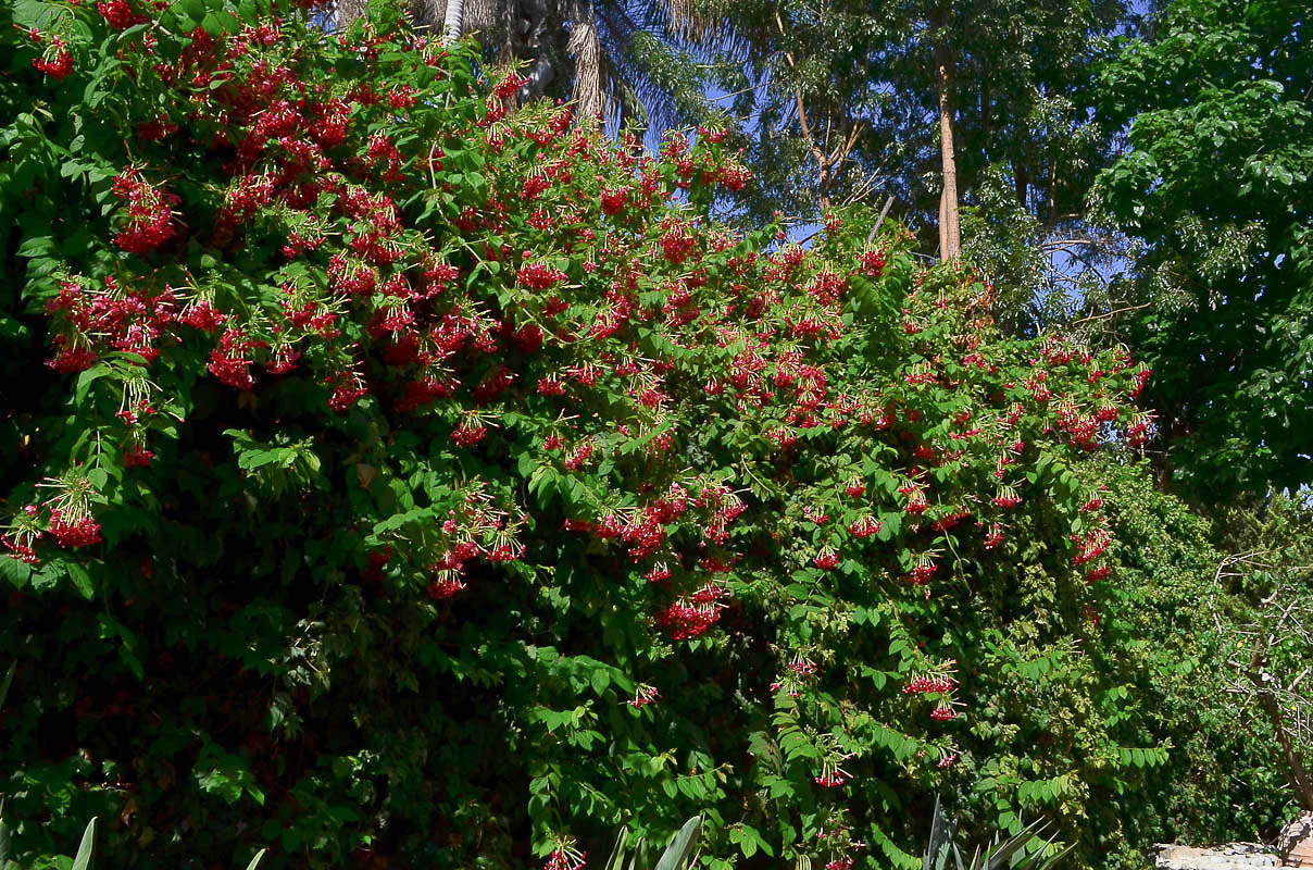 Цветущие растения, опирающиеся на ограду. Израиль, Шарон, г. Герцлия, в культуре. 23.08.2013.