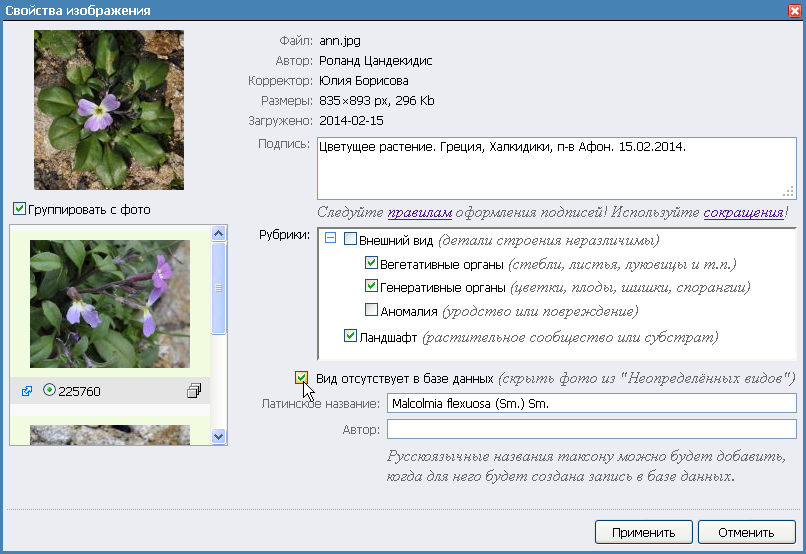 | Dmitry Oreshkin | Может быть, тогда стоит убрать "Malcolmia flexuosa (Sm.) Sm." из подписи? |