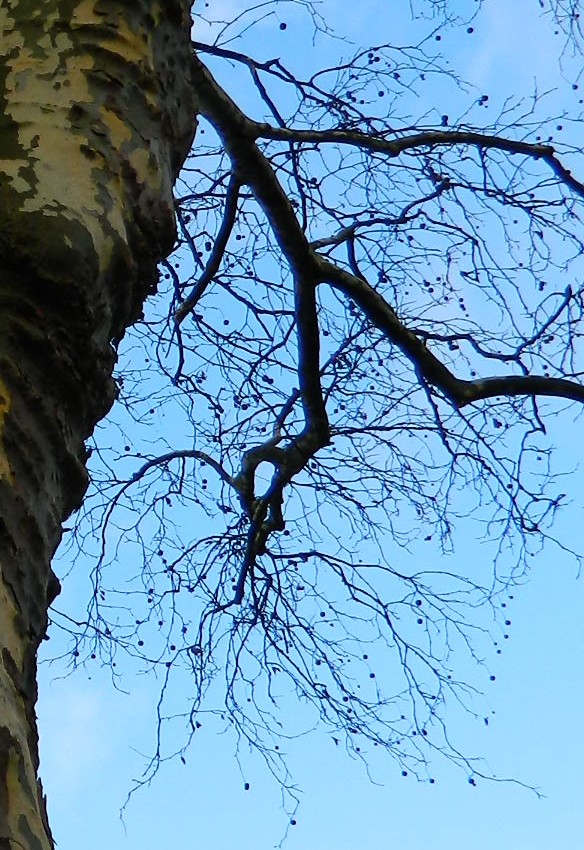 Средняя часть ствола взрослого дерева. Германия г. Хаген, в озеленении. Декабрь 2013 г.