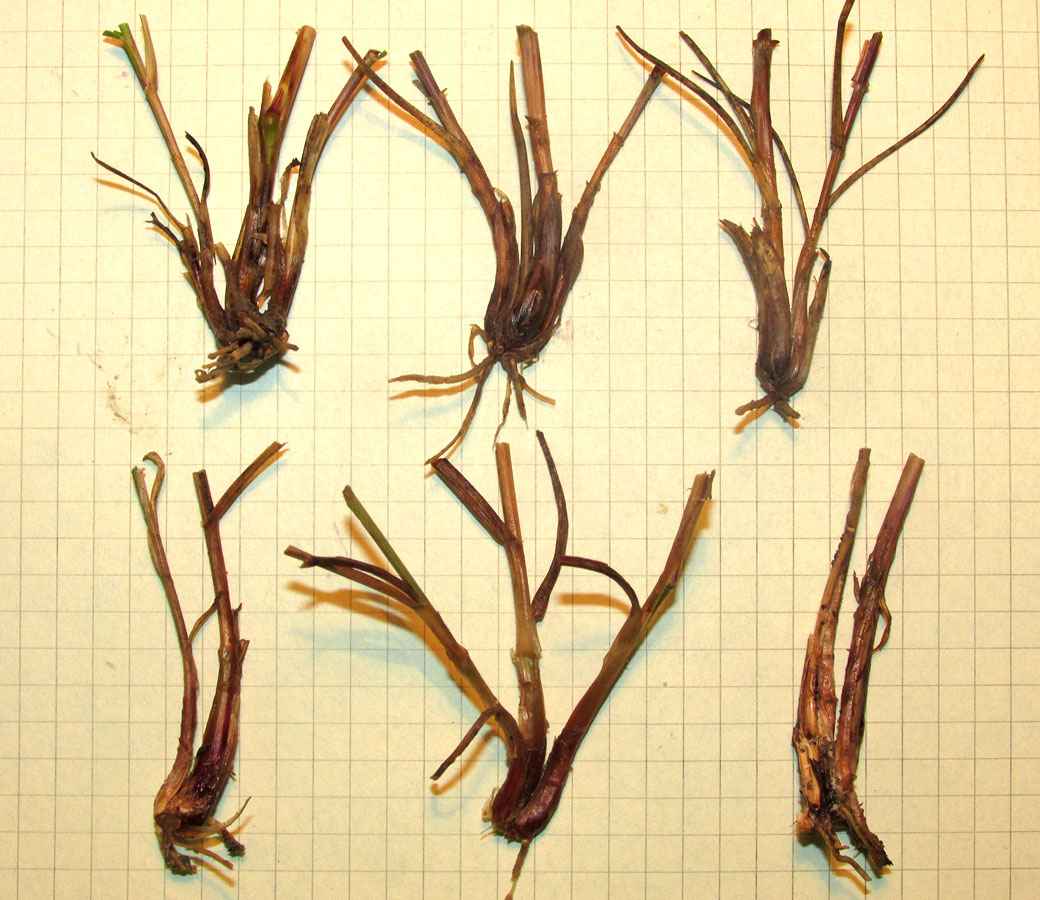 Нижние части выкопанных побегов. Крым, окр. Феодосии, Лисья бухта, склон бедленда. 10 июня 2014 г.