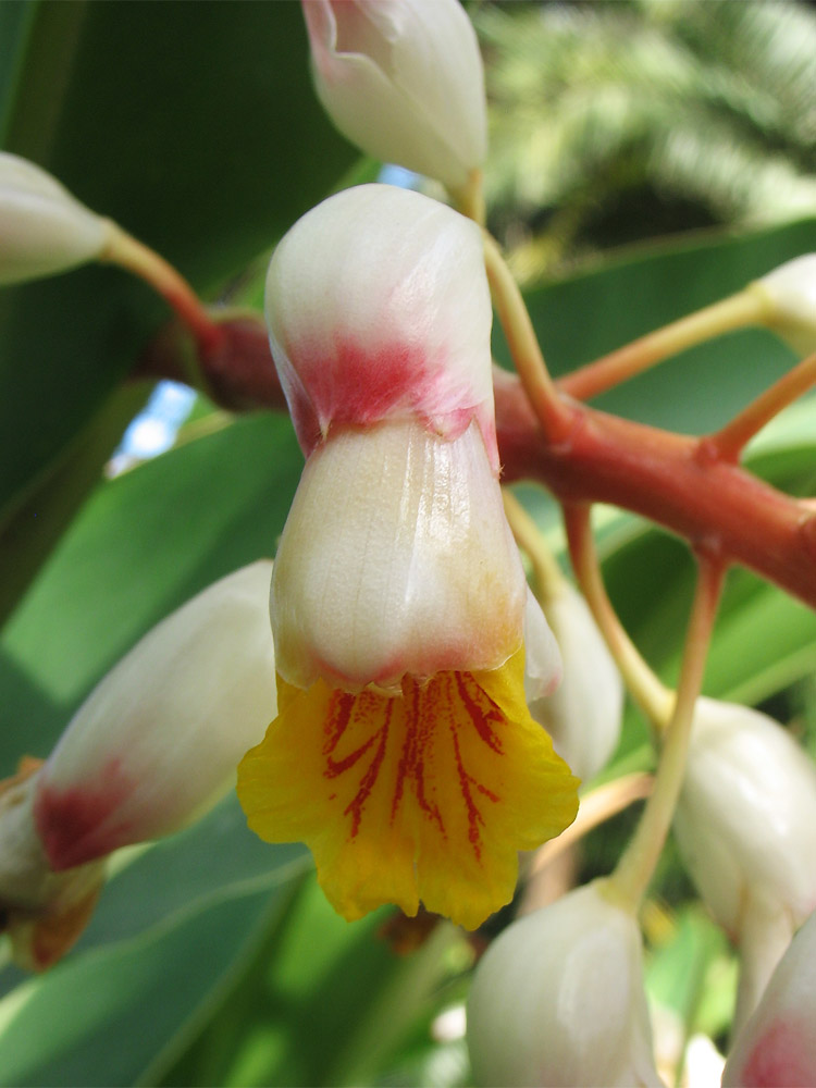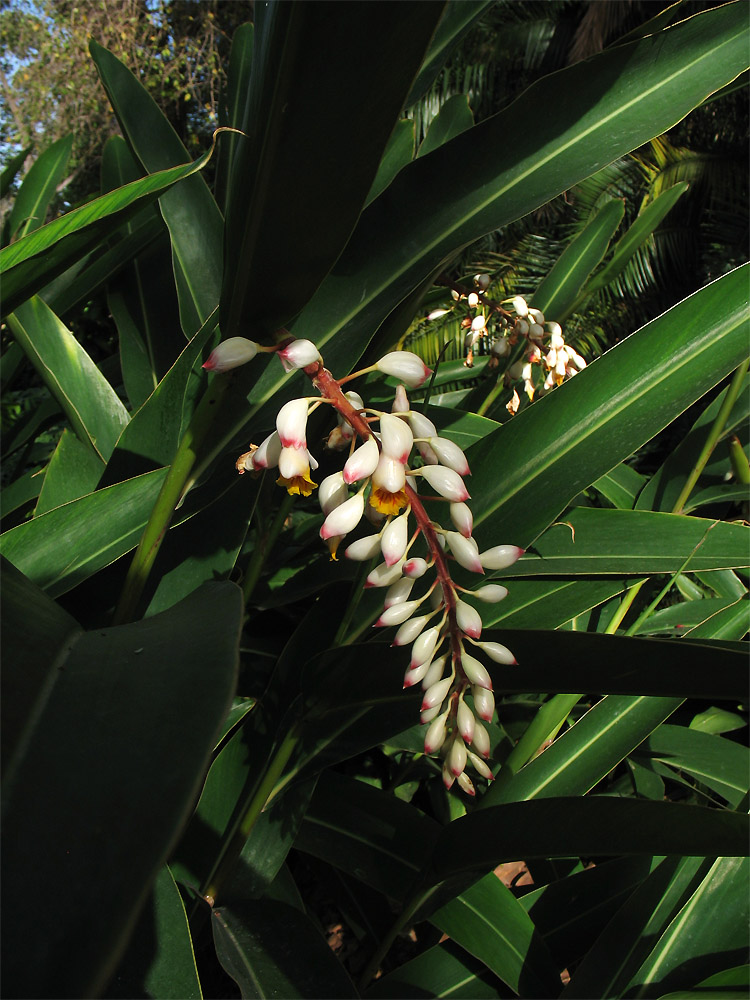 | Andriy Kovalchuk | Тамара, а название взято с таблички? Просто я снимал очень похожую цветущую альпинию в том же месте, и на табличке было написано "Alpinia densespicata" (но, конечно, там может быть и несколько видов альпинии). Различить эти два вида можно по строению соцветия - у A. zerumbet соцветие - узкая метелка, а у A. densespicata - кисть. |