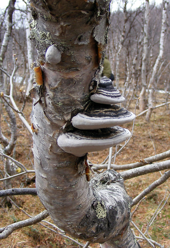 | Dmitry Oreshkin | Цвет коры у северных древесных берёз сильно зависит от возраста ветви/ствола и меняется в течение жизни. Практически у всех виденных мною на севере Кольского полуострова деревьев молодые ветви очень тёмные (вплоть до вишнёво-чёрных), а чем старше побег, тем светлее он становится, переходя от красноватых к бронзовым и, затем, белым оттенкам. У старых деревьев кора может быть от белой до пепельно-серой. Причём все эти варианты окраски хорошо видны в разновозрастных березняках. |