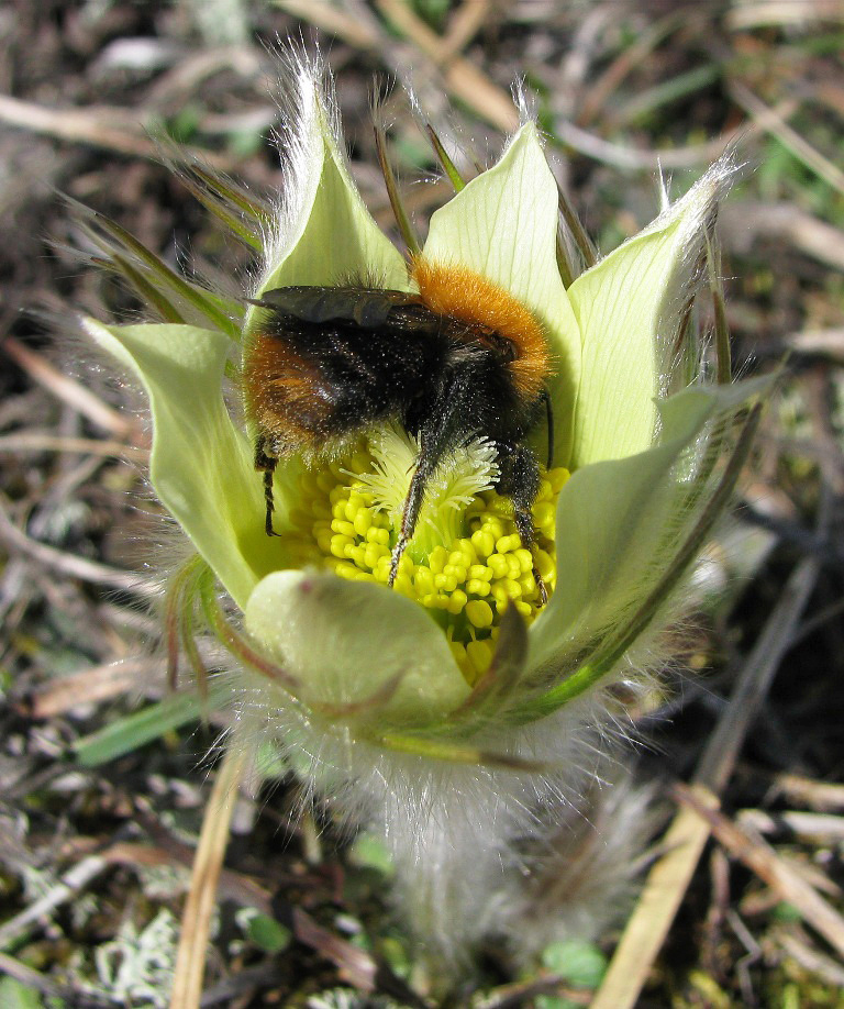 Цветок с кормящимся шмелем. Респ. Коми, окр. г. Сыктывкар, опушка соснового бора. 17.05.2009.