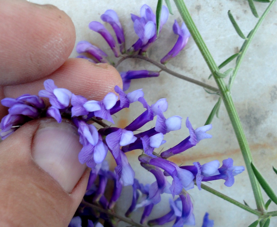 | Denis A. Davydov | Я думал о V. villosa, но у него мохнатое оттопыренное опушение, особенно заметное на верхушках побегов, которые зачастую кажутся беловатыми. Поэтому и перенес к Vicia cracca. |