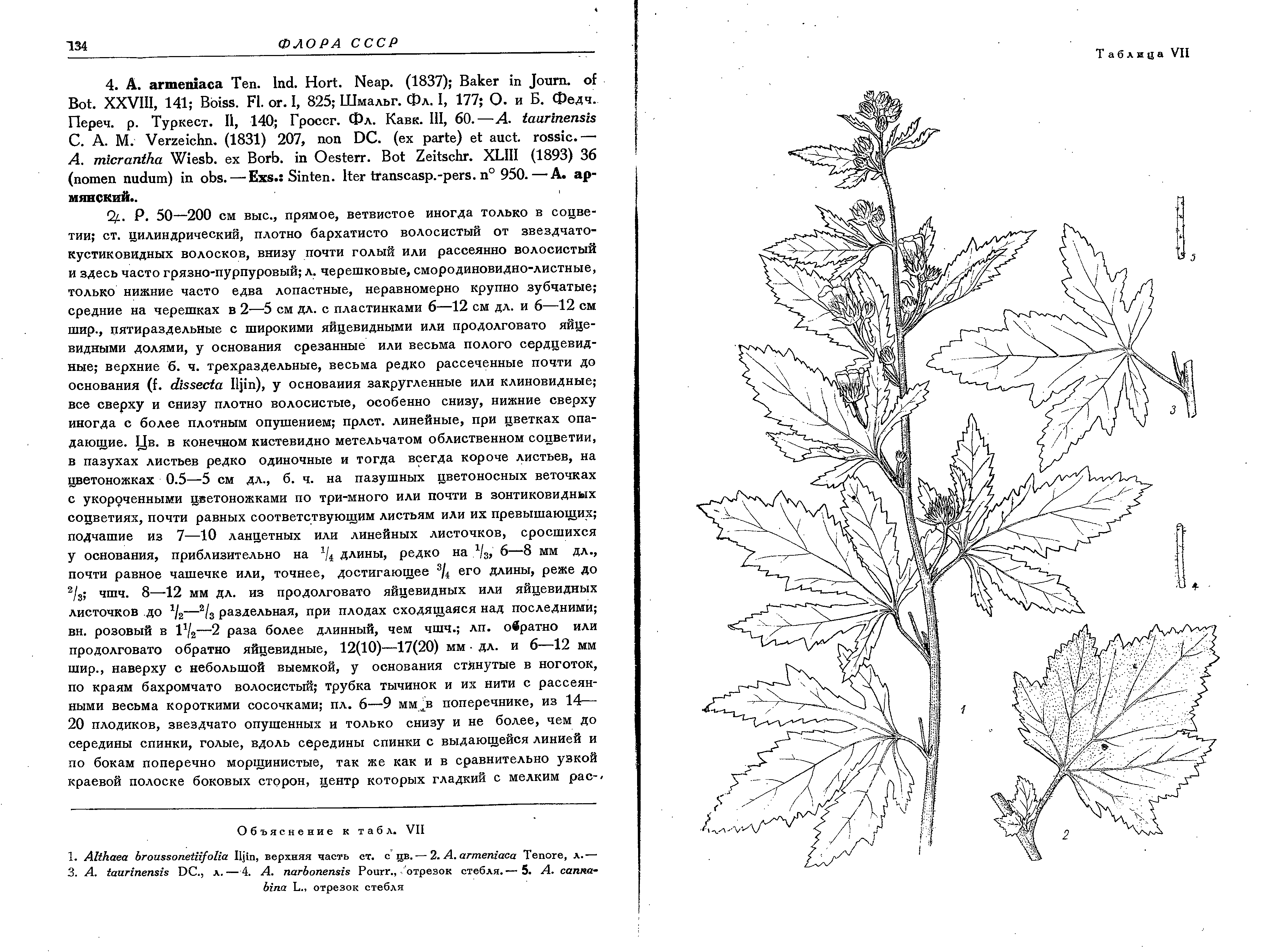 Флора Казахстана устарела, по определителю растений Средней Азии, по рисункам во Флоре СССР и моим снимкам это все же A.broussonetiifolia. По тем листьям на снимке Евгения, которые можно разглядеть, они скорее рассеченные, чем лопастные.Во Флоре Казахстана нет Althaea broussonetiifolia. По рисунку во Флоре СССР - скорее A. armeniaca |