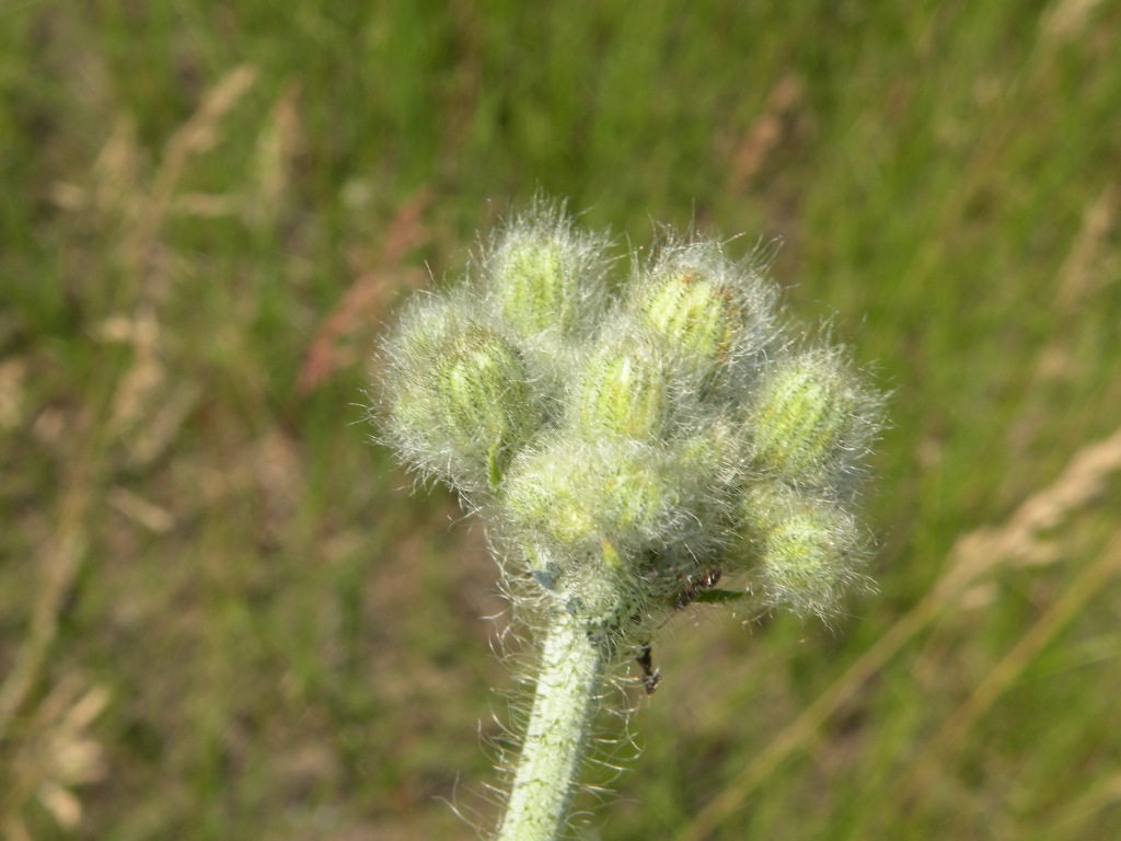 | Aleksandr Ebel | Для Pilosella echioides (даже при такой широкой трактовке этого вида, какая принята в новейших обработках, - например, в т. 14б сводки "Растения Центральной Азии") не характерно такое густое опушение листочков обёртки длинными простыми волосками. Это скорее P. proceriformis s.l. |