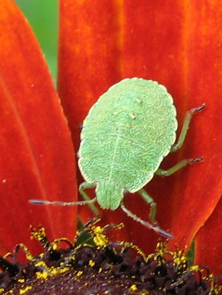 | Denis A. Davydov | Клоп принадлежит к роду Palomena, но отличить P. prasina от P. viridissima по такому фото невозможно. |